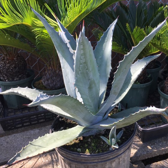 綺麗なシルバーグリーンの葉色で生育と共に葉が噴水のような放線状に伸び、どんどん迫力が増していきます。希少価値が高く、存在感が抜群です。本来は多肉質の観葉植物ですが寒さに強い品種は庭植えでも楽しむことができます。