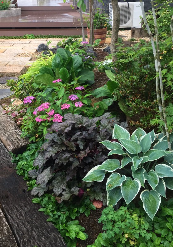 もともと和風庭園によく使用されていましたが、最近は洋風な庭でも人気です。美しい葉が特徴で日蔭ですと綺麗な葉が楽しめます。夏には可愛らしい薄紫色の花を咲かせます。