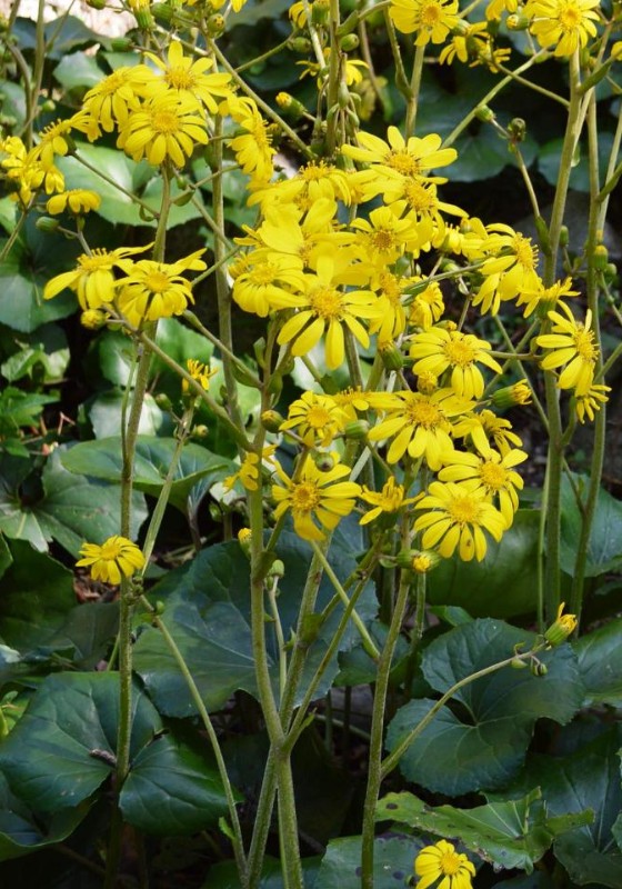 日陰でもよく育ち一年中緑の葉っぱが枯れずに茂っているので、古くから庭園の下草などに植えられています。病害虫も少なく日本の気候にも合い、育てやすい植物です。秋からキクに似た一重の黄色い花をまとめて咲かせます。