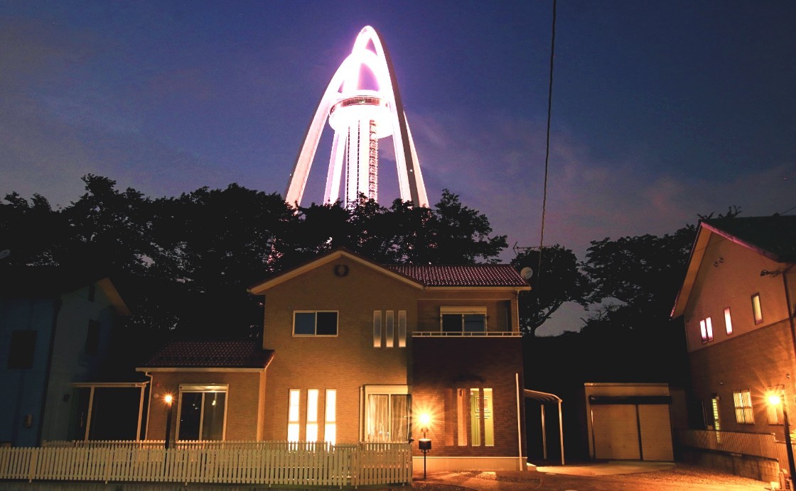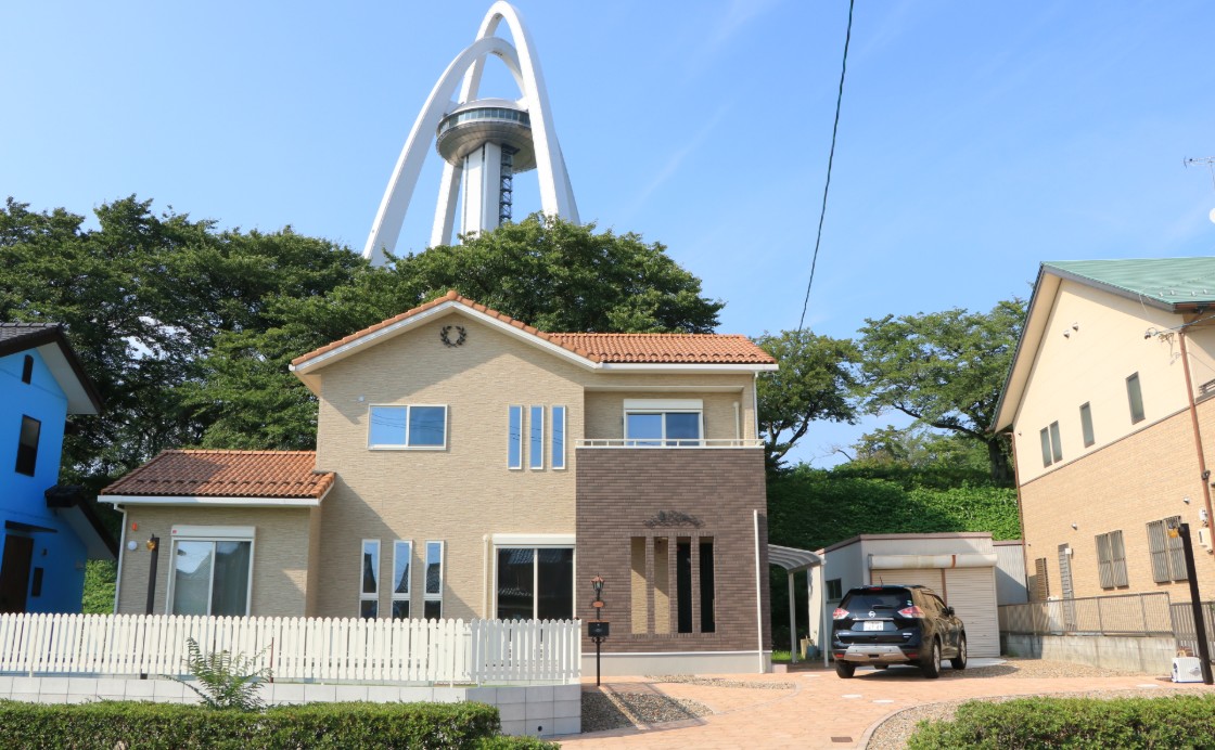 南欧風のオレンジ屋根に合わせた同色の緩やかなアプローチとドックランプラン
