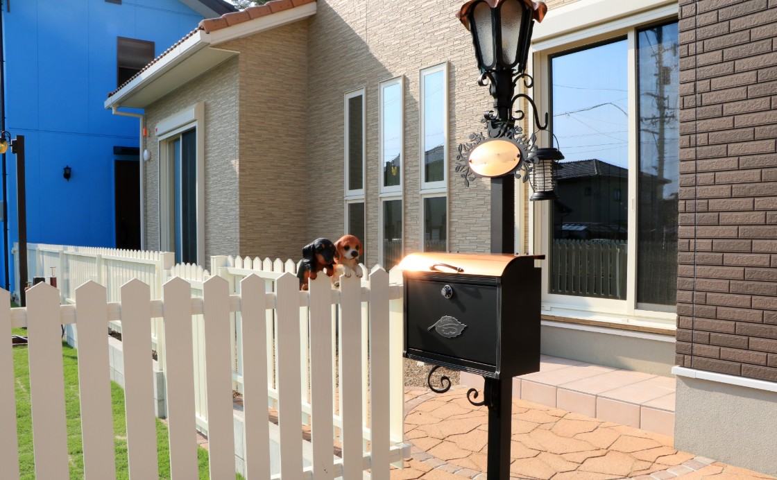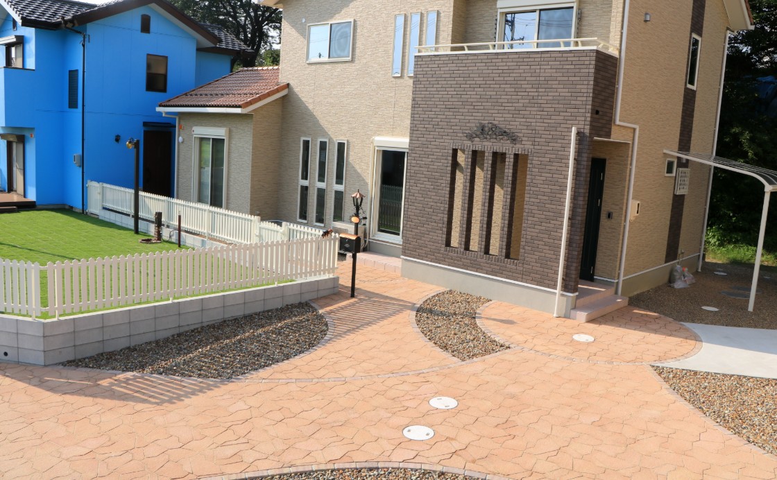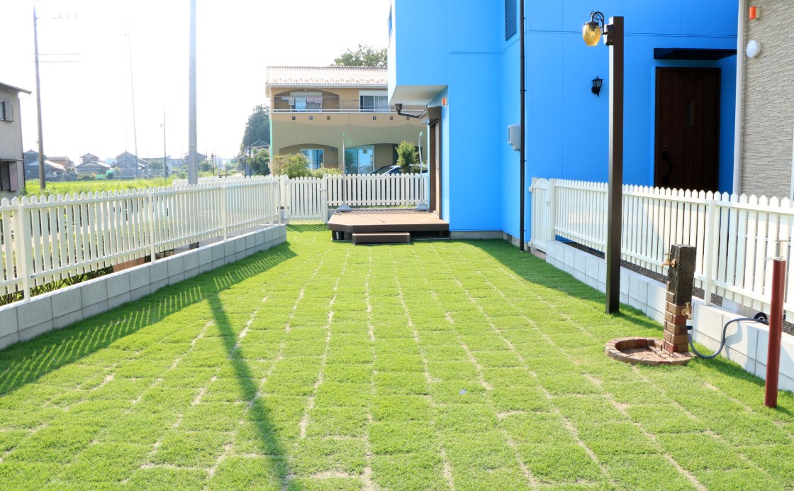 必要な方向へ伸びたアプローチが柔らかな雰囲気を漂わせ、南欧風のご住宅をさらに高めてくれます。舗装された部分はもちろん、砂利の部分についてもアクセントになるようデザインしております。また天然芝を敷設したドックランには特徴的なフェンスを設置し、照明、水栓、ドックポールと機能性も抜群です。