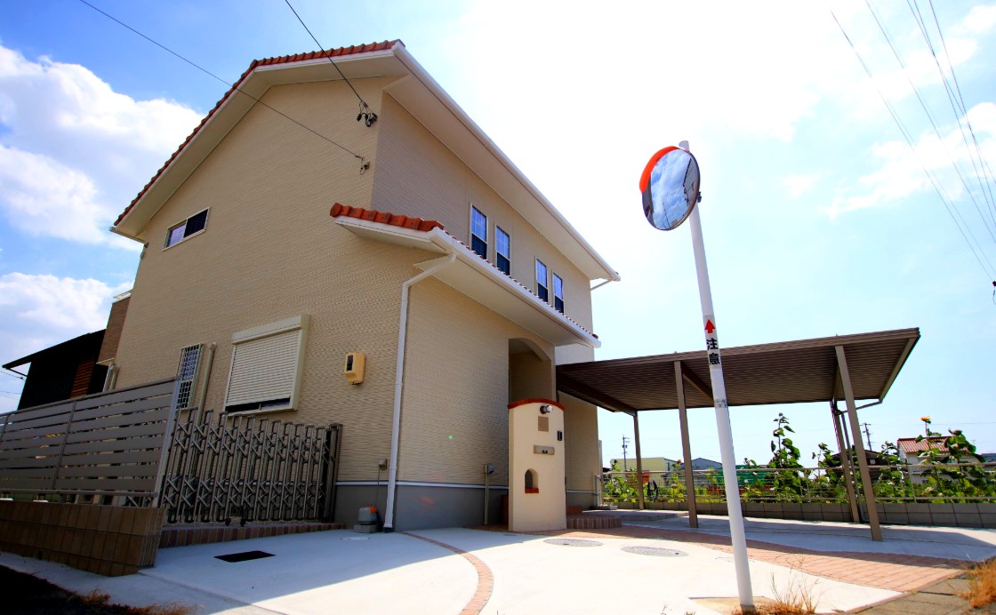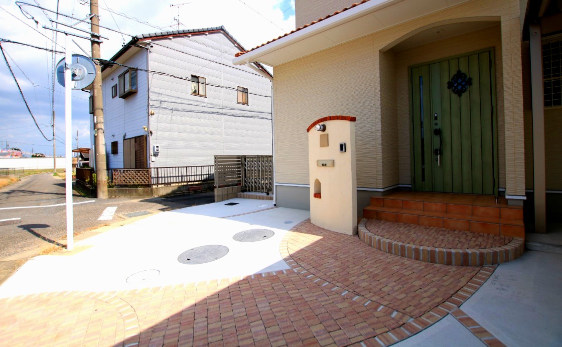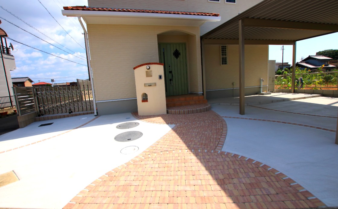 南欧風の住宅に合わせた特徴的なレンガアプローチ