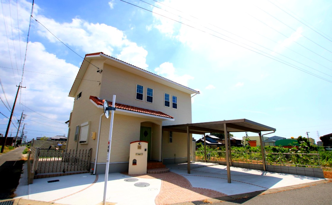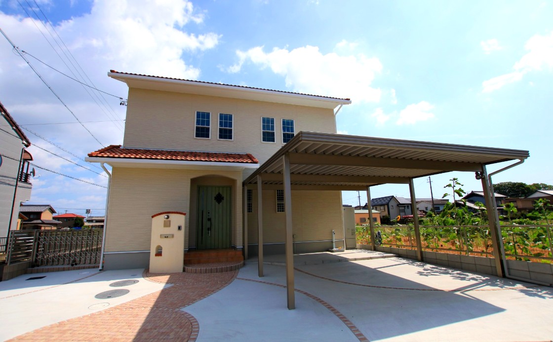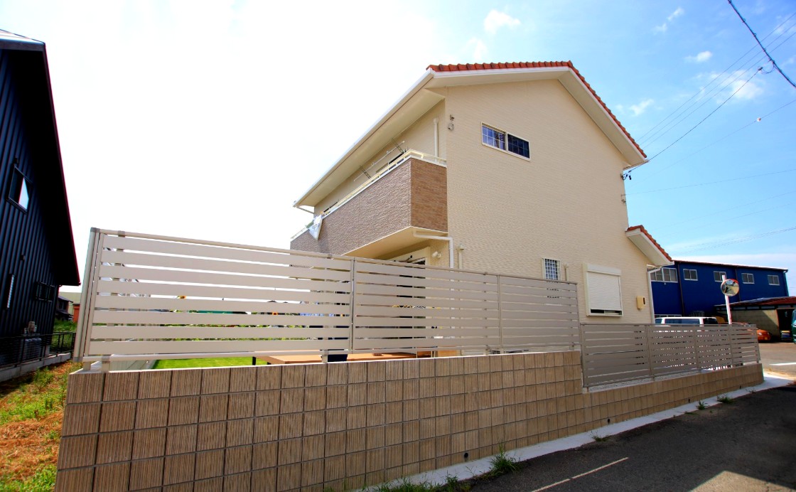 可愛らしい雰囲気のご住宅に2台分の折板カーポートを搭載。強くがっしりとしたカーポートですが、比較的シャープなタイプを使用し、重い雰囲気になりすぎず機能性は抜群です。アプローチと門柱はレンガをふんだんに使いご住宅の雰囲気に合わせつつも特徴的なデザインに。防犯面を考慮し伸縮ゲートを設置し、自転車やバイクを収納するスペースも作りました。
