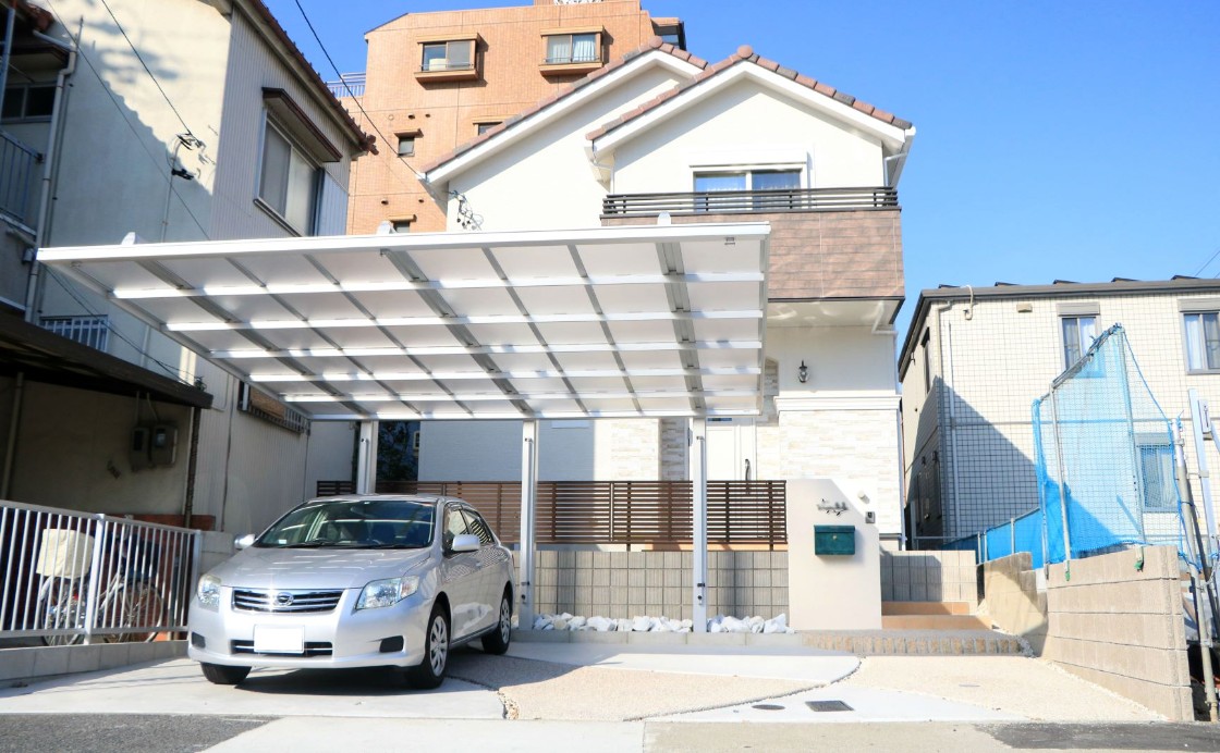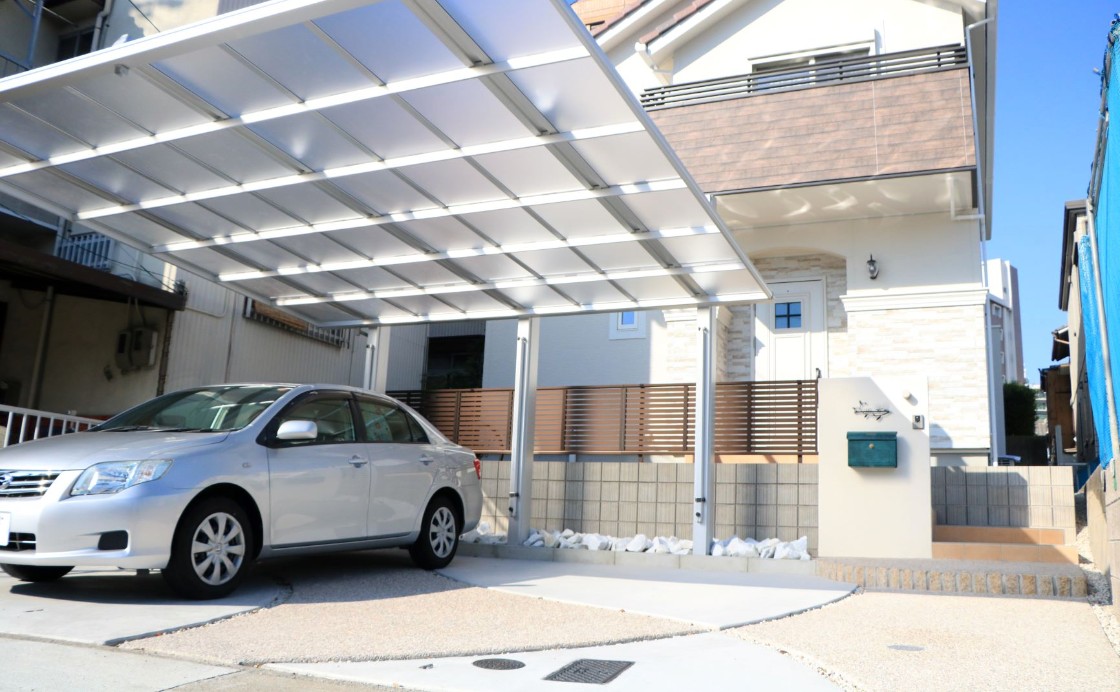 機能的なカーポートと緩やかなカーブがミックスされたプロヴァンス風スタイル