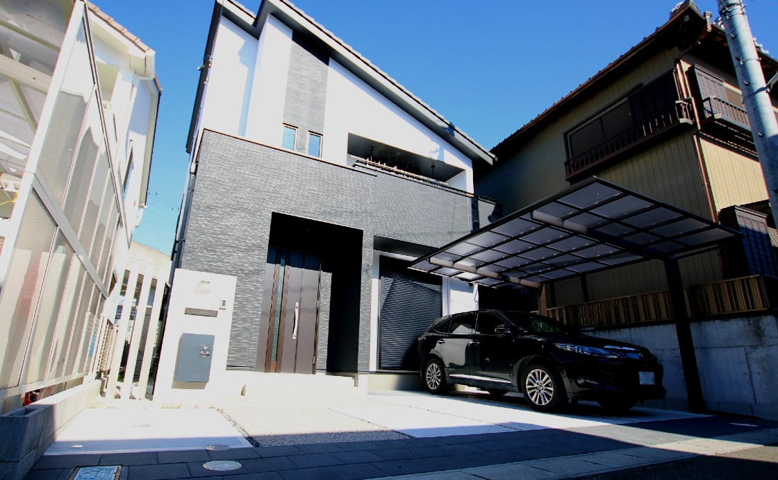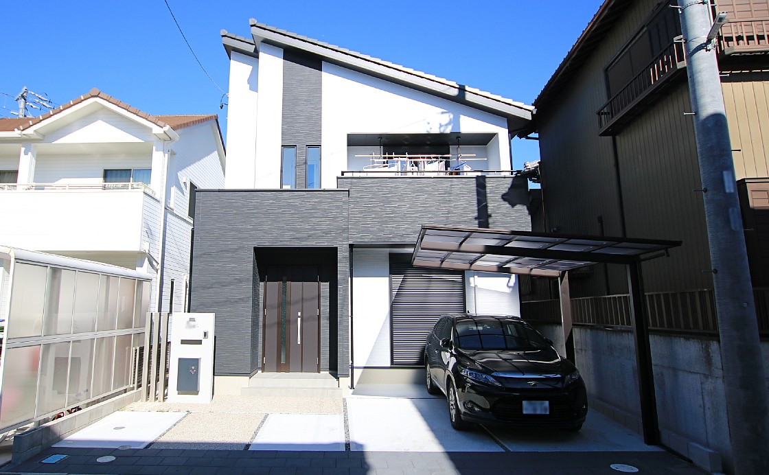 家・庭・車 全てモノトーンでまとめたモダンエクステリアプラン